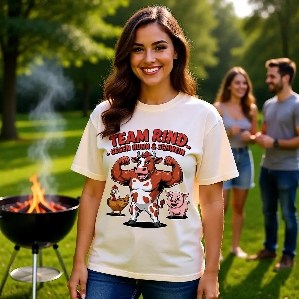 Dieses humorvolle Shirt funktioniert sowohl auf hellen als auch auf dunklen Hintergründen und bringt Spaß und Farbe in dein Outfit. Egal, ob du am Grill stehst oder einfach nur mit Freunden abhängst, das Team Rind Shirt sorgt immer für gute Laune!