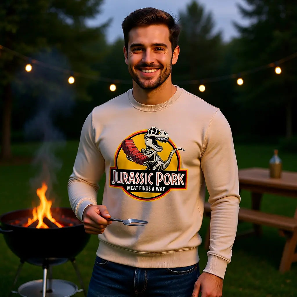 Werde zum Gesprächsthema jeder Grillparty und bringe deinen Daring-Style mit dem Jurassic Pork Sweatshirt zum Ausdruck. Bestelle jetzt und zeige der Welt, dass du ein echter Fleischjäger bist!